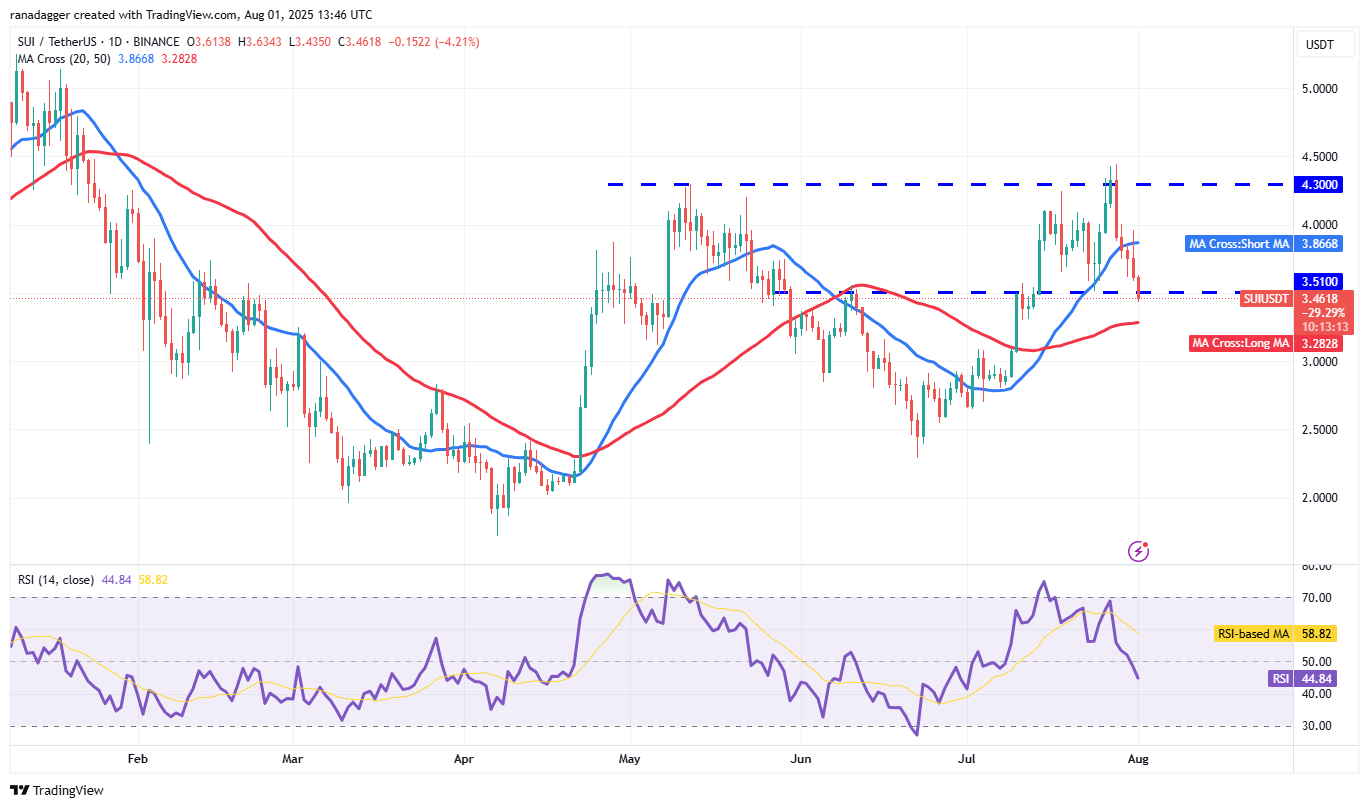 The bears are trying to strengthen their position by maintaining the price below $3.51. If they manage to do that, the SUI/USDT pair could drop to the 50-day SMA ($3.28).