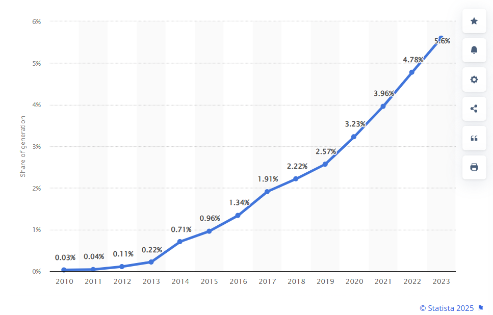 The US solar market has grown substantially in recent years, surpassing 160 gigawatts of installed capacity as of 2024, according to the World Resources Institute. Solar energy now accounts for an estimated 5% to 6% of the nation’s total electricity supply, nearly double its share in 2020.