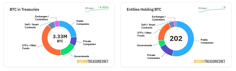 Publicly traded companies are now the largest institutional Bitcoin holders after exchange-traded funds (ETFs), the data shows.