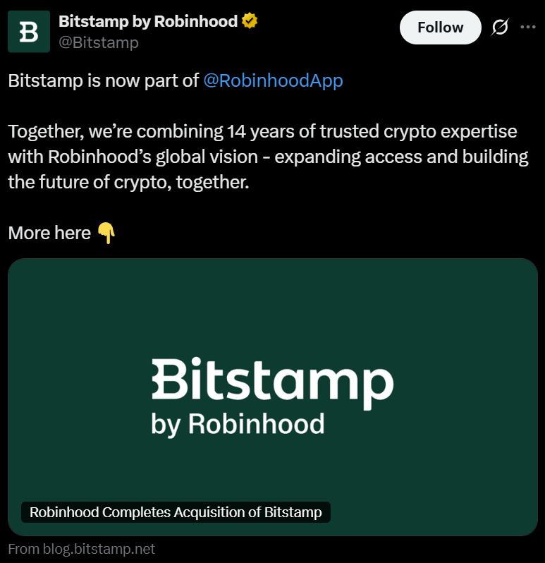 Earlier in June, the company announced it had completed a $200 million acquisition of crypto exchange Bitstamp, and with it, secured more than 50 licenses and registrations worldwide in the process.