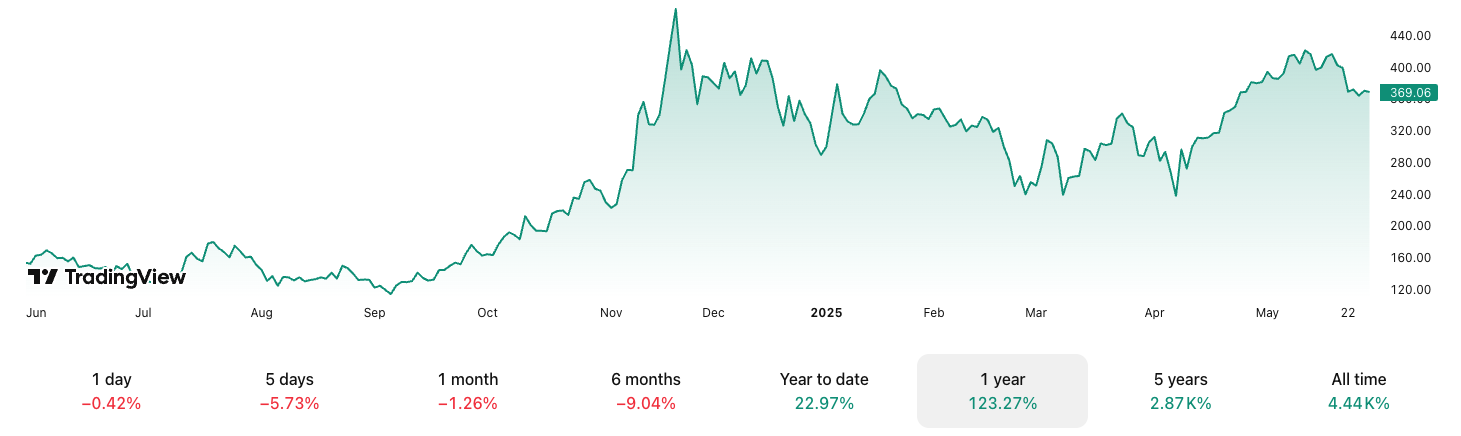 Strategy’s stock, trading under the ticker MSTR, saw downward pressure following the sales, briefly falling below $360 on both May 28 and May 30.