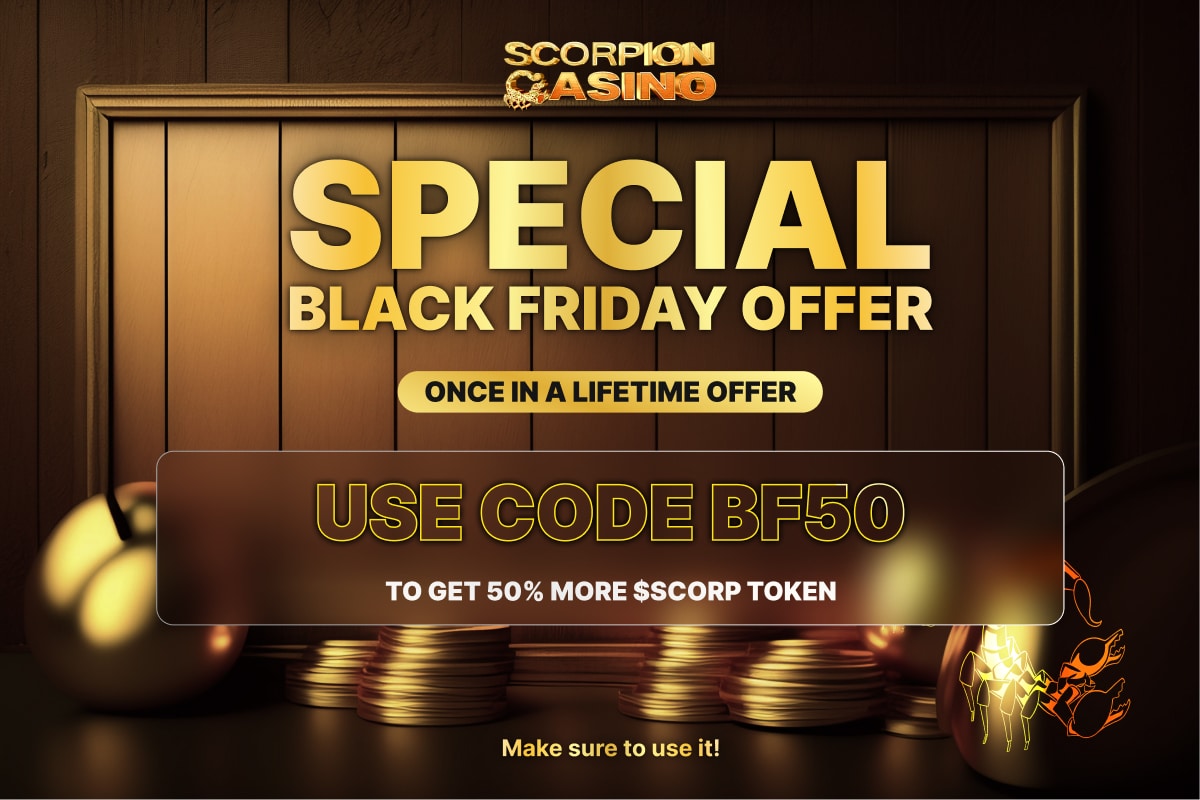 The latest buzz is the fact that Scorpion Casino has a major Black Friday deal going on where investors get a 50% bonus on the presale. We tell you what the code down below is so you can get involved in the SCORP presale, as well as other information about the project.