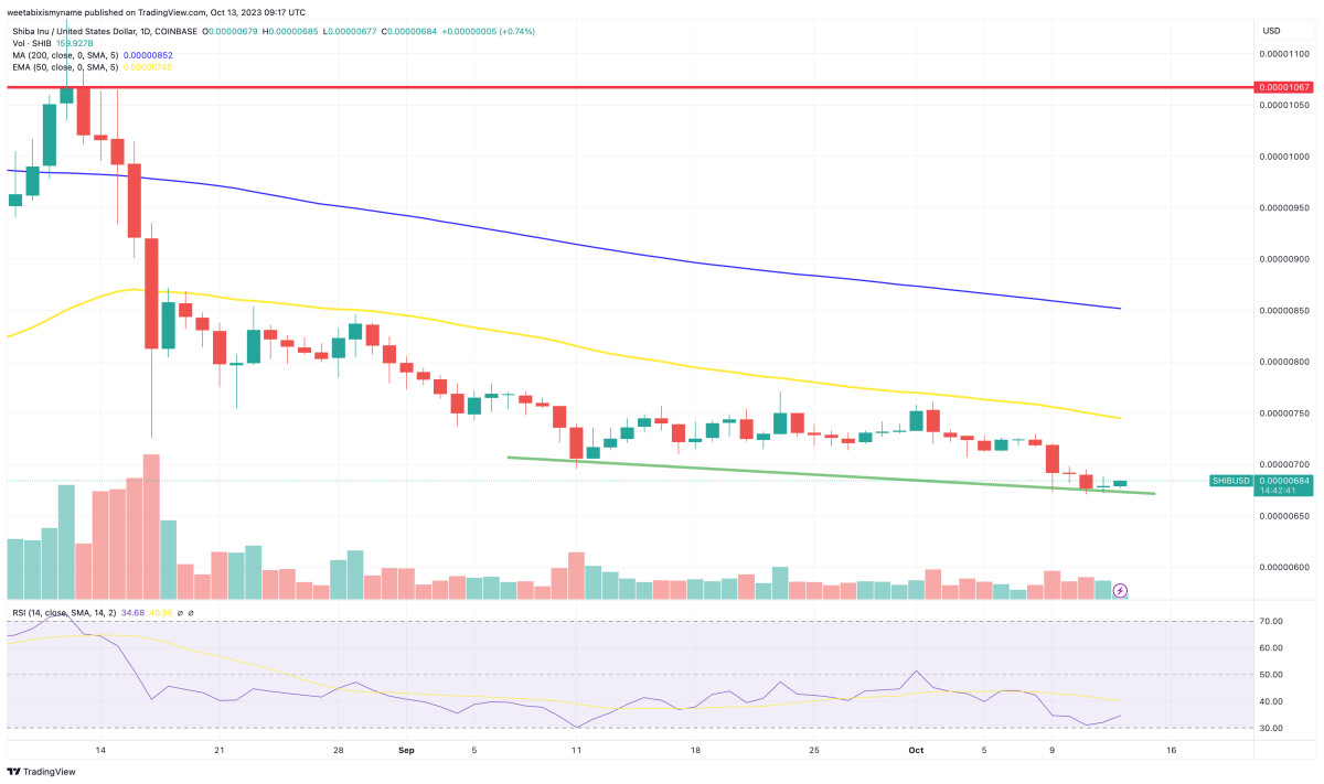 The price of Shiba Inu (SHIB) has remained basically flat in the past 24 hours, rising by a modest 0.3% to $0.00000683.