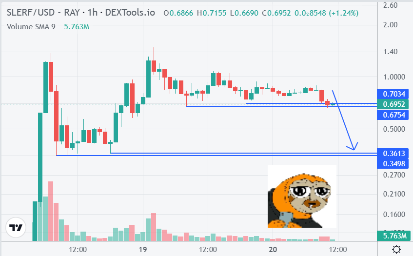 Still up more than 30x versus its DEX launch price, the Slerf price is vulnerable to more profit-taking-driven downside.