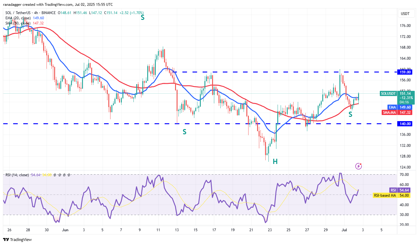 The pair rebounded off the 50-SMA on the 4-hour chart and rose above the 20-EMA. That signals aggressive buying at lower levels. If buyers sustain the price above the 20-EMA, the pair could jump to $155 and later to $159.