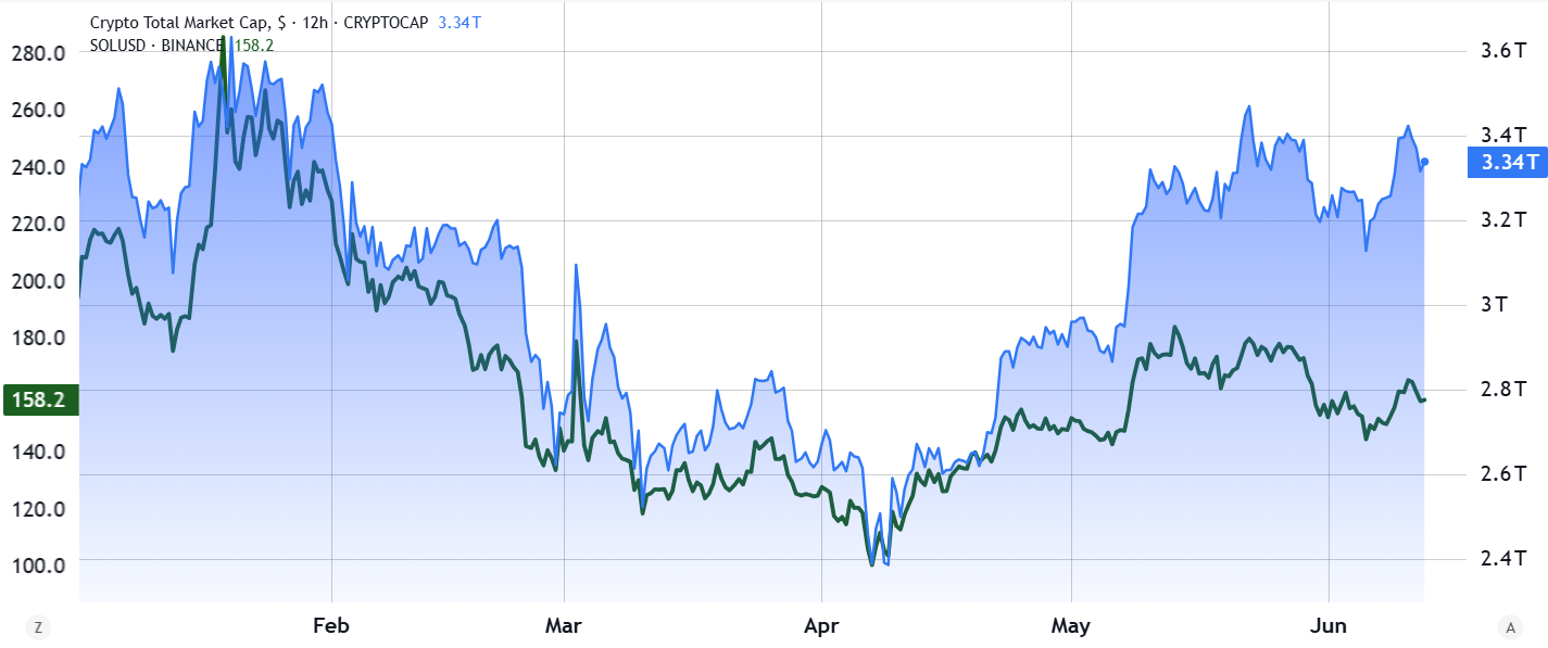 Even with these developments, many SOL investors are likely disappointed. The current $155 level remains well below the $294 all-time high. Meanwhile, the total crypto market cap is just 12% below its record. The sharp drop in Solana network activity has led investors to lower expectations for future SOL gains, making a return to $200 less likely.