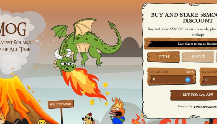 To join the fun, investors need a Solana-compatible wallet with either SOL, USDT, or BONK, which can then be spent on $SMOG via the Jupiter DEX aggregator or Birdeye.