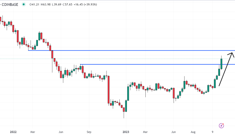 With key resistance in the $47.50 area broken, a test of the early 2022 lows around $75 seems only a question of when, not if.