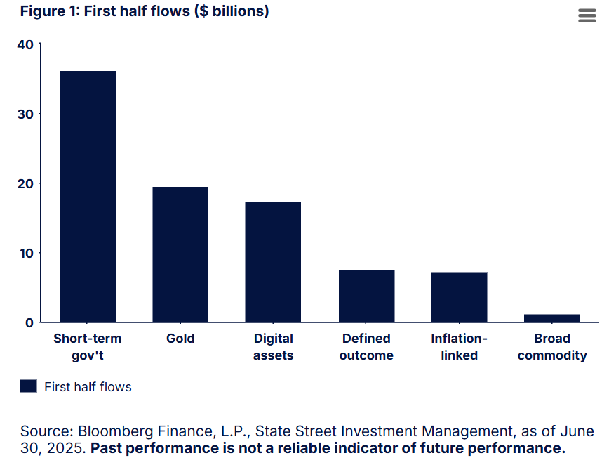 In the first half of 2025, strong demand for Bitcoin helped push digital asset ETFs to the third-largest fund category by inflows, behind only short-term government debt and gold, according to State Street data.