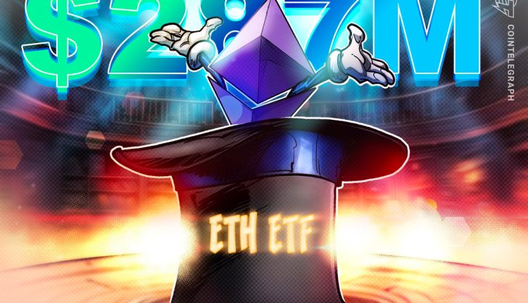 United States’ spot Ether exchange-traded funds (ETFs) funds drew $287.6 million in net inflows on Thursday, snapping a four-day streak of outflows, according to data from crypto ETF tracker SoSoValue.