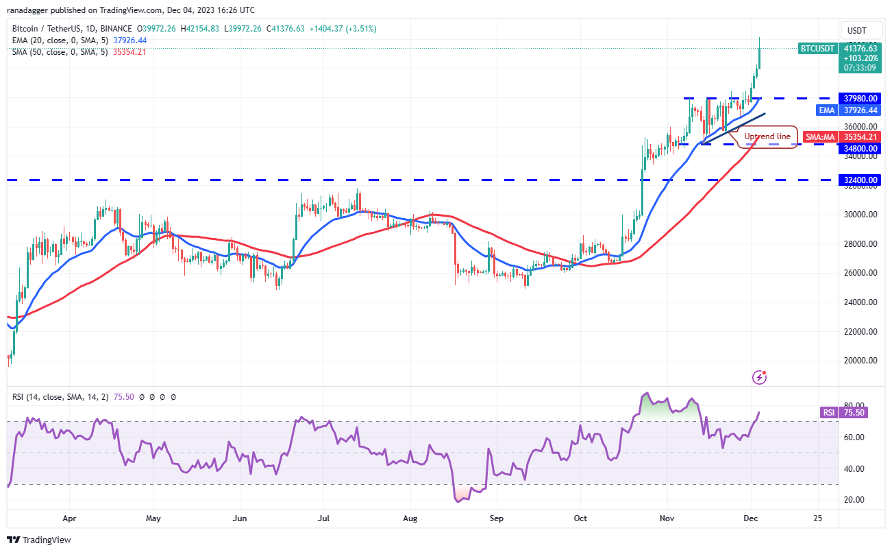 Bitcoin (BTC) and Ether (ETH) surged above their respective overhead resistance levels on Dec. 4, indicating that the bulls are in no mood to slow down. The higher the price goes without a meaningful correction, the greater the feeling of missing out among traders. When traders chase prices higher, it could lead to a blow-off top before a correction sets in.