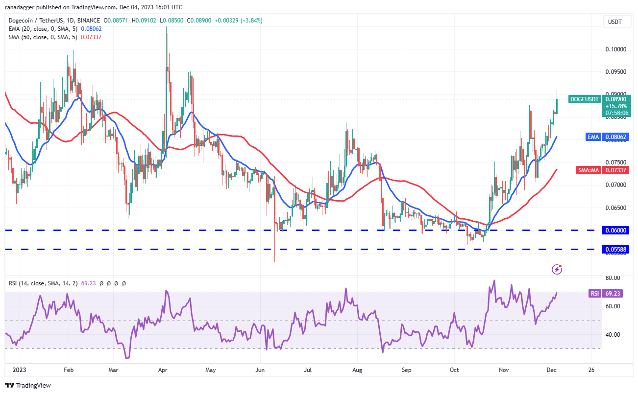 Dogecoin (DOGE) has been in a strong recovery for the past several days. The bulls pushed the price above $0.09 on Dec. 4, indicating strong demand at higher levels.