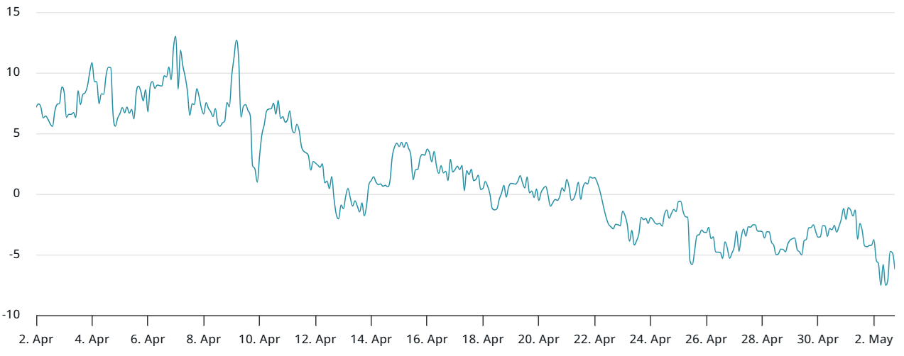 Bitcoin (BTC) broke out of a tight trading range between $93,000 and $95,600 on May 1, following six days of limited movement. Despite reaching its highest price in ten weeks at $97,930, sentiment remains neutral according to BTC derivatives indicators. This price action has occurred alongside significant net inflows into US spot exchange-traded Bitcoin funds (ETFs).