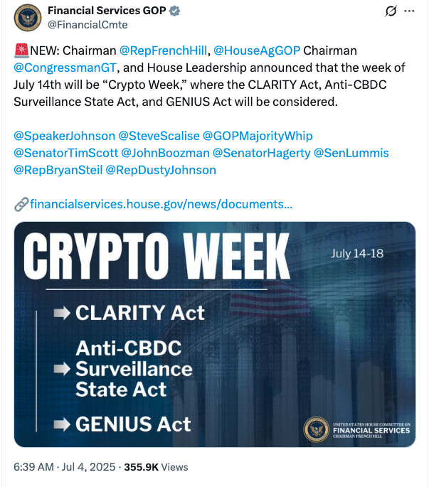 While the world economy and Medicaid recipients are bracing for the impact of the Big Beautiful Bill, pro-crypto lawmakers in Washington are already busy.