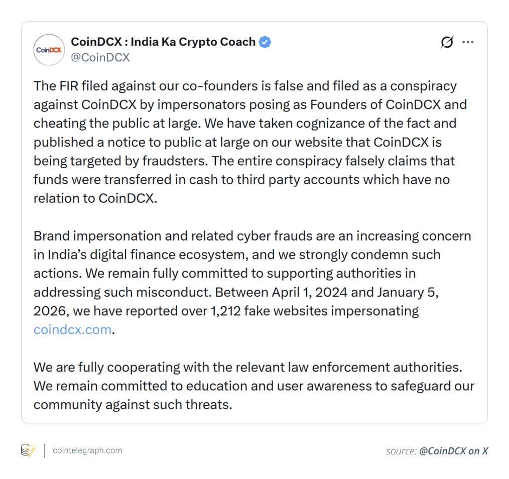 The CoinDCX impersonation incident is a stark case study of this pattern. What began as a 7.16 million rupee ($77,000) fraud complaint eventually escalated into police proceedings against the exchange’s leadership. However, the court’s intervention ultimately shifted the blame away from the actual platform, revealing that the culprit was a sophisticated digital facade operated by scammers.
