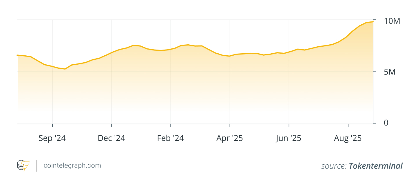 Key drivers: Ultra-low fees ($0.01 average), Coinbase’s 100 million+ user base for onboarding, stablecoin flows and partnerships for consumer DApps.