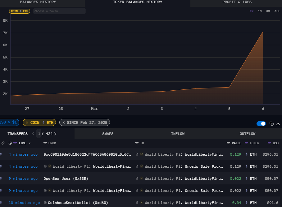 The decentralized finance (DeFi) platform linked to US President Donald Trump significantly increased its Ether holdings over the past week as the cryptocurrency’s price briefly dipped below $2,000.