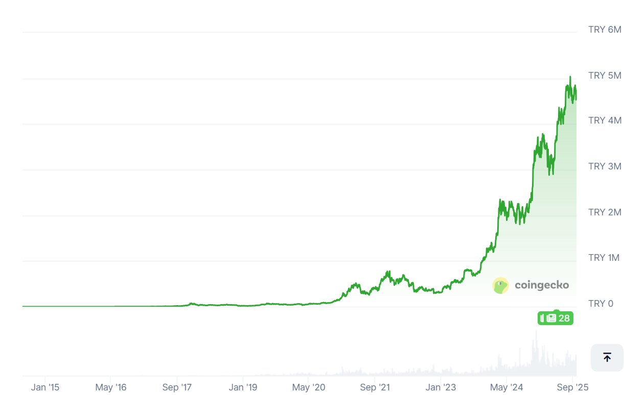 To illustrate the scale of the lira’s decline: In 2020, one Bitcoin was worth about 100,000 Turkish lira. Today, that figure exceeds 4.6 million lira, reflecting both Bitcoin’s price appreciation and the lira’s steep depreciation.