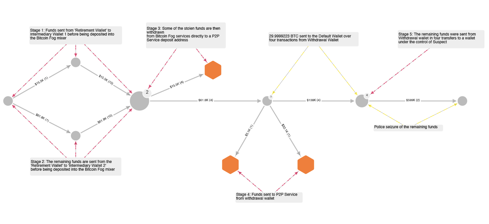 The Bitcoin was then sent through the crypto mixing service Bitcoin Fog in an apparent attempt to obscure its origins.