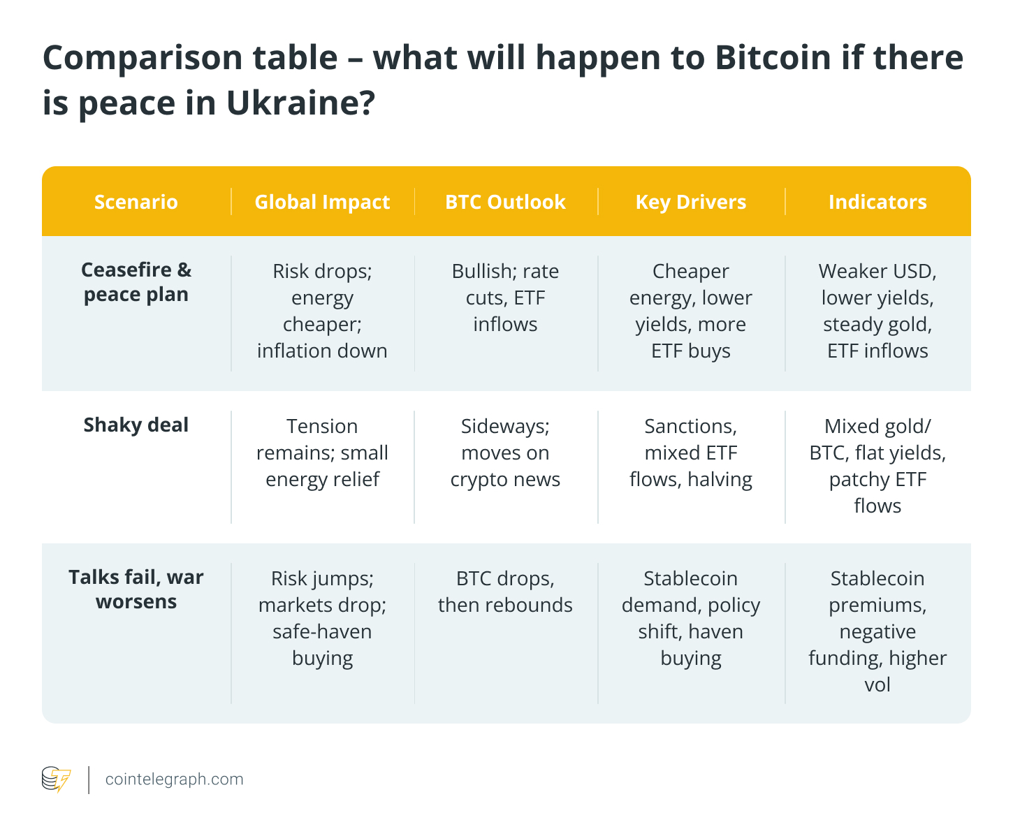 A genuine peace in Ukraine would likely give Bitcoin a modest but meaningful boost.