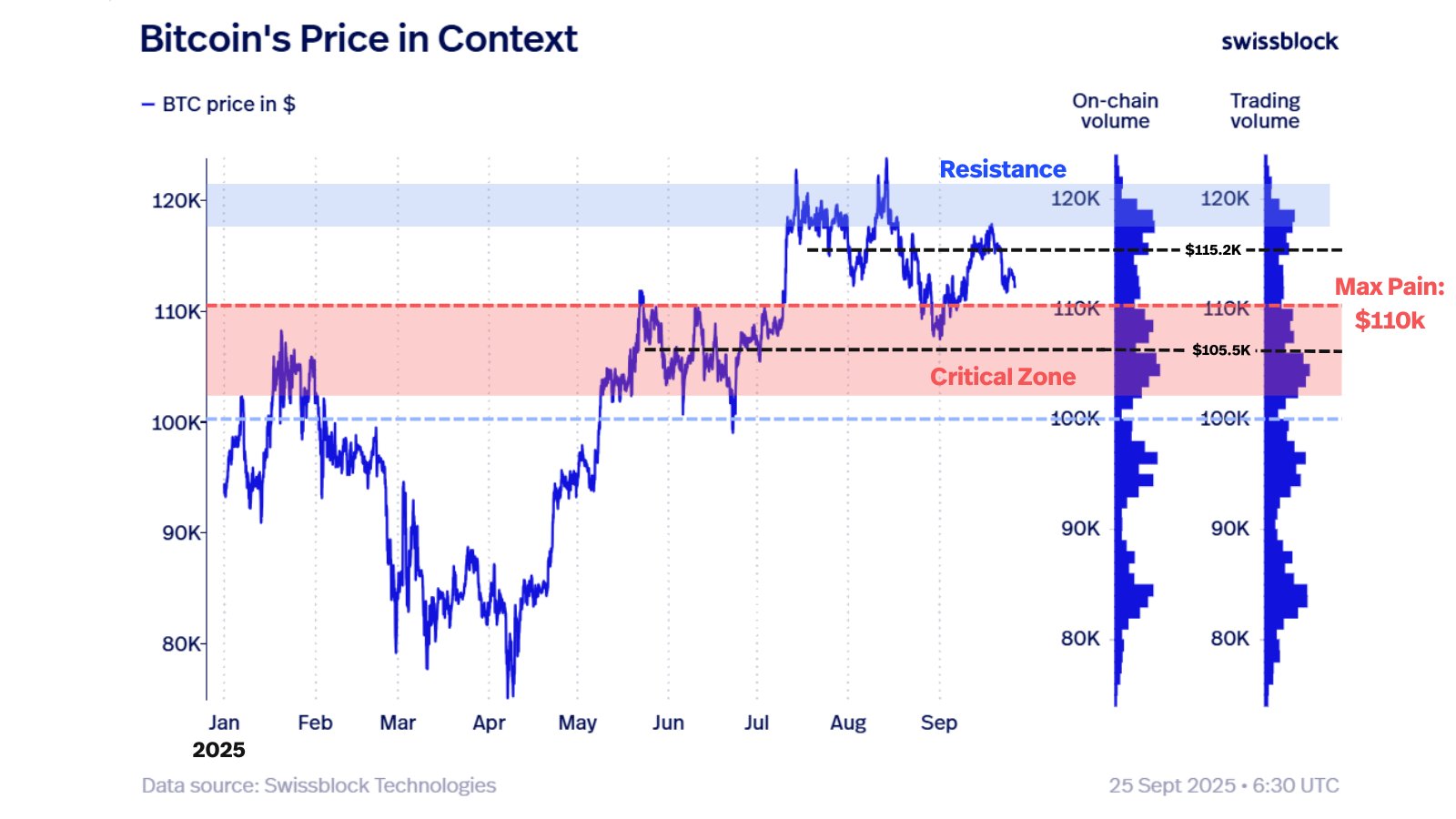 Swissblock argued that BTC/USD needed to reclaim $115,200 to have a shot at revisiting the top of its range. Losing $110,000, on the other hand, would open up the path toward the $100,000 mark.