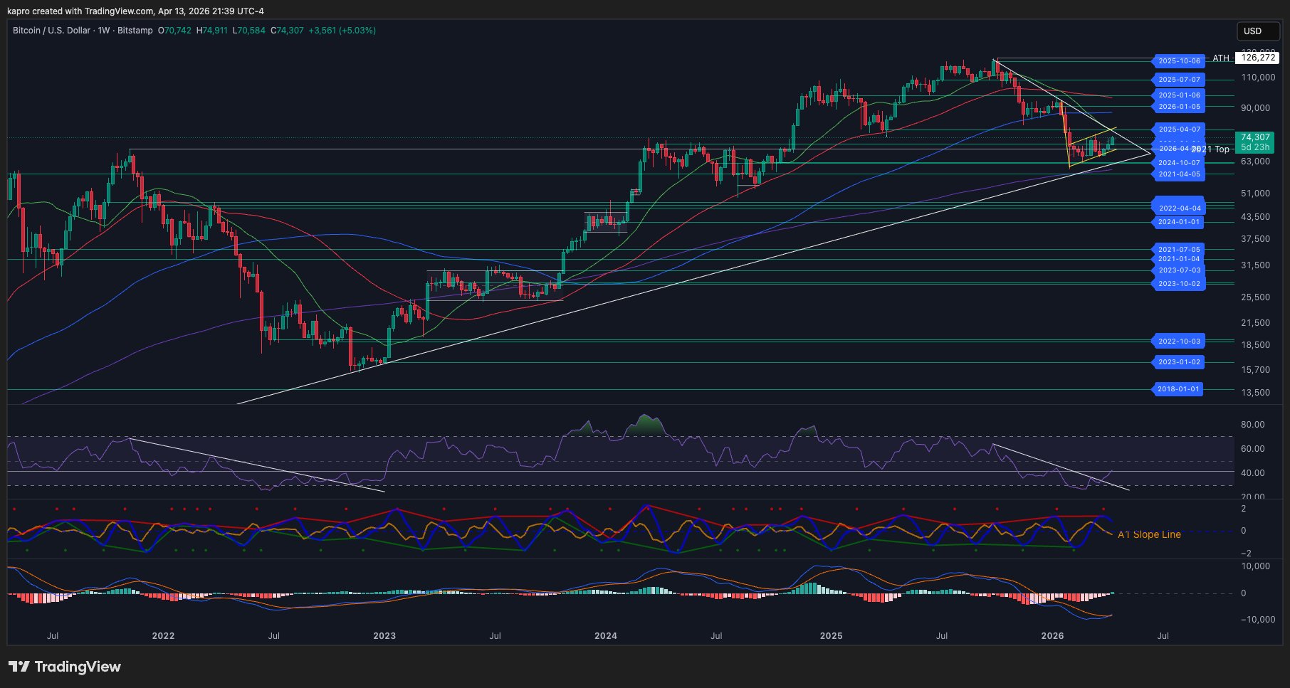 “Nothing says that $BTC has to continue to mimic history, but if it does we should see price flirt with the 21-Week Moving Average ~$78.3k.”