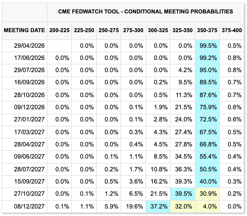 Correspondingly, markets kept bets of interest-rate cuts from the Federal Reserve firmly at the end of next year, per data from CME Group’s FedWatch Tool.