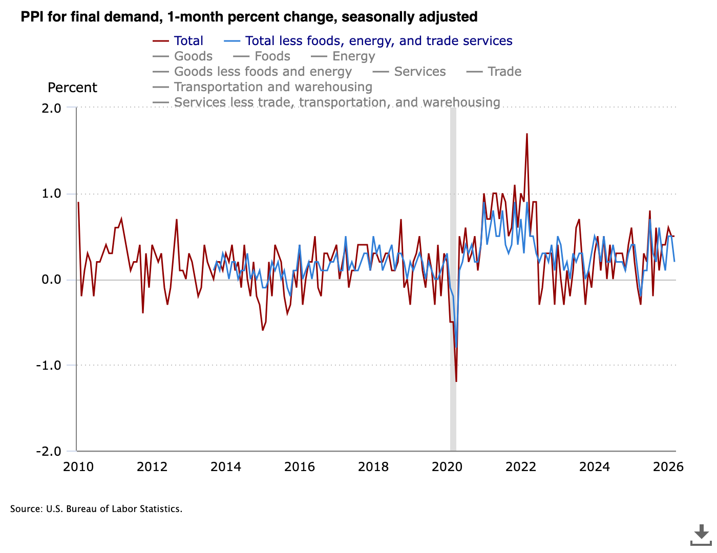 US PPI inflation remains below market expectations despite the war in Iran having no end in sight.