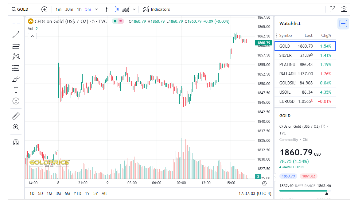 One-day gold chart, 10-9-2023. Source: GoldPrice, TradingView