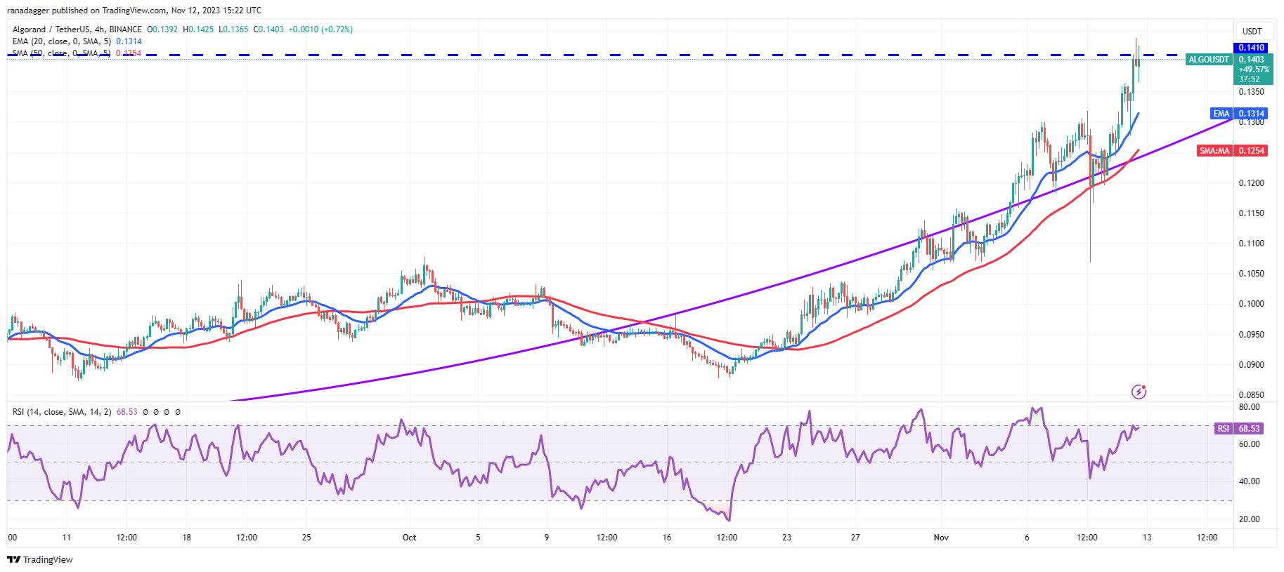 Alternatively, if the price turns down sharply from $0.14, it will suggest that bears continue to defend the level with vigor. The ALGO/USDT pair could then slump to the 20-day EMA ($0.12).