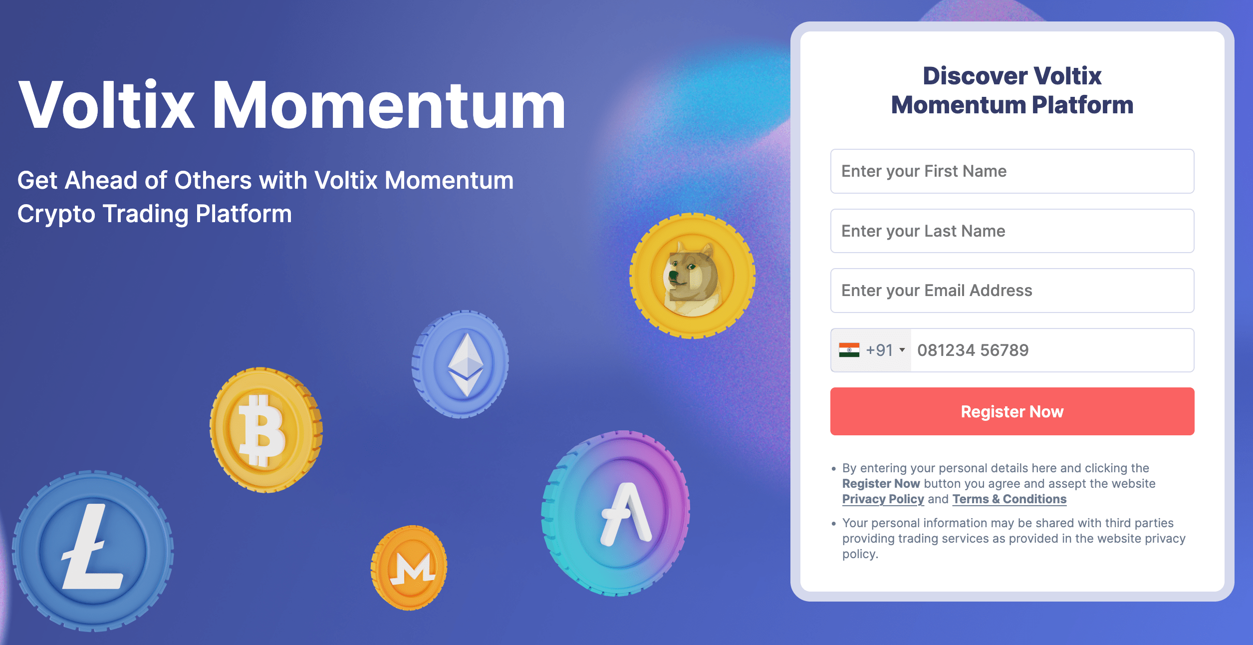 Visit the official Voltix Momentum website first and go through all the content. Once you’ve read the material, enter your name, address, and phone number to proceed. An account manager will call you after some time to finalize account verification.