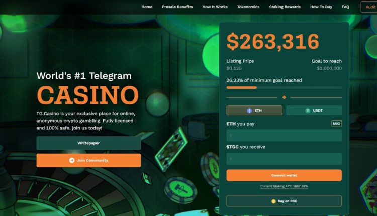 To help power the growth of its Telegram-based GambleFi platform, TG.Casino is conducting an exciting presale that has already raised an impressive $260,000 in little more than one week.