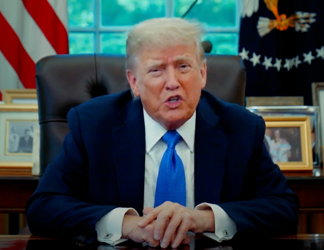 President Trump addresses the Coinbase summit in a prerecorded message. Source: Coinbase
