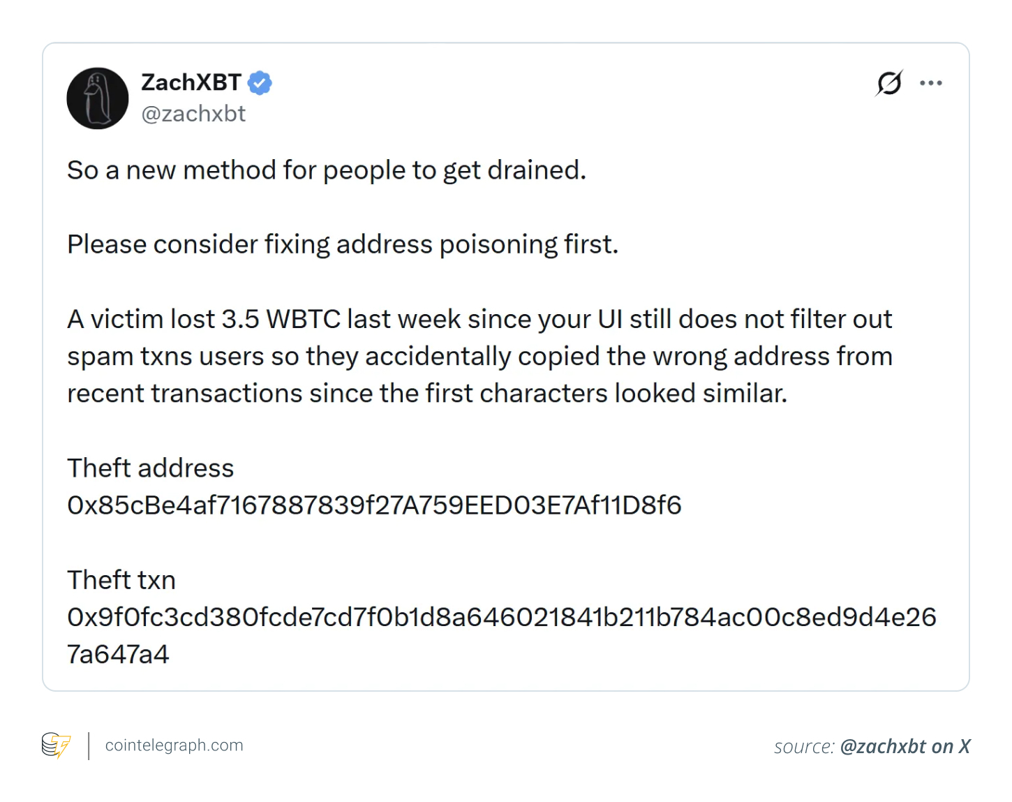 Prominent crypto figures like Binance co-founder Changpeng “CZ” Zhao have publicly urged wallets to add stronger safeguards following address poisoning incidents.