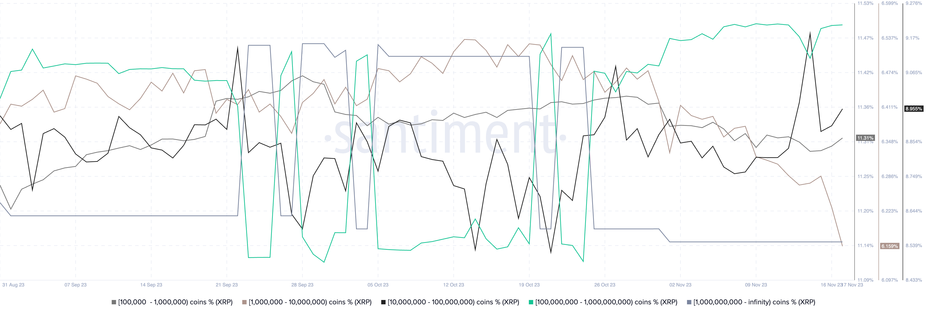 XRP’s price weakness on Nov. 17 follows modest drops in the holdings of its richest addresses.