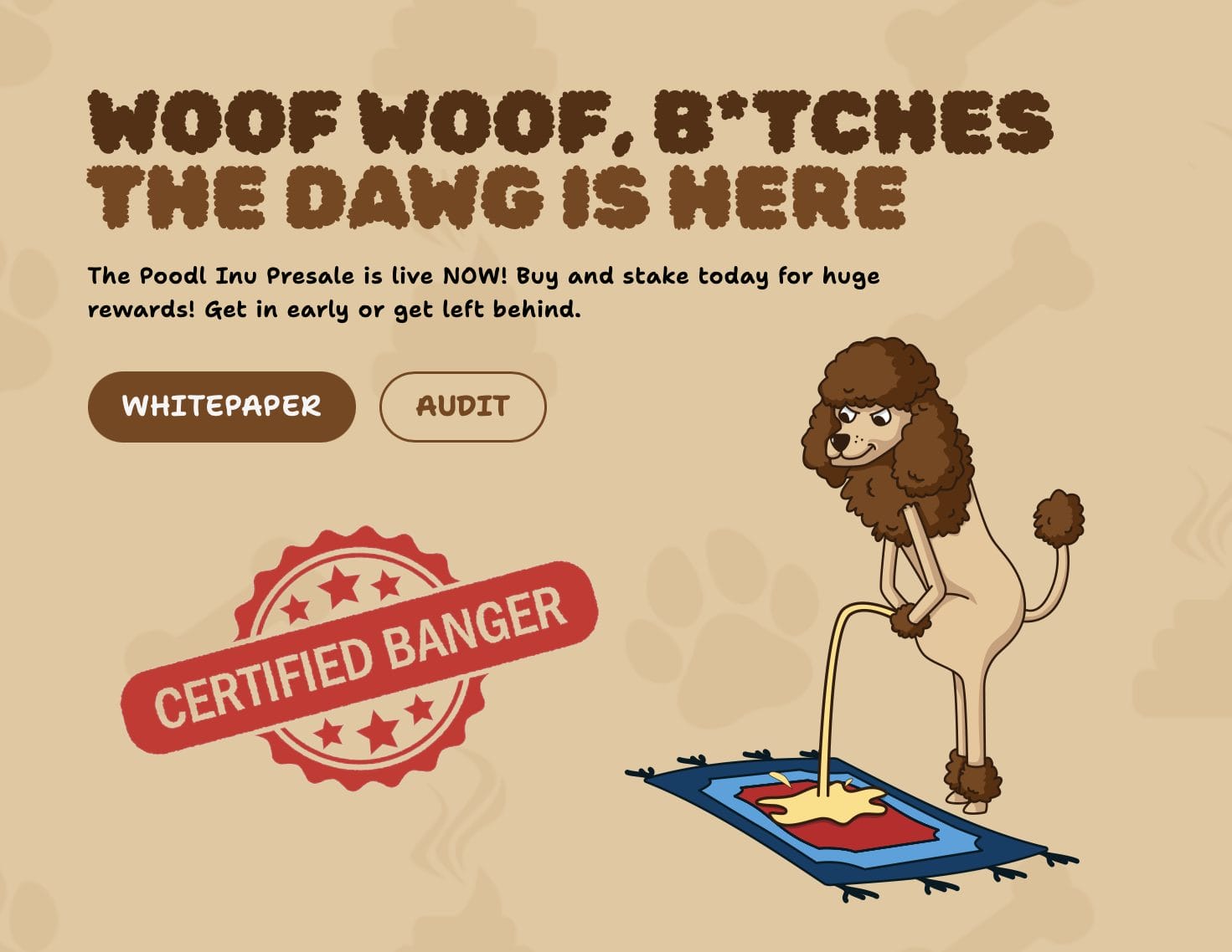 “Poodl Inu is gonna be a star! His face is gonna be plastered over every crypto website, crypto influencer, and YouTube video in the entire world. Normies and non-believers are gonna be crying into their $0.25 bowl of microwave ramen for not buying during Presale.