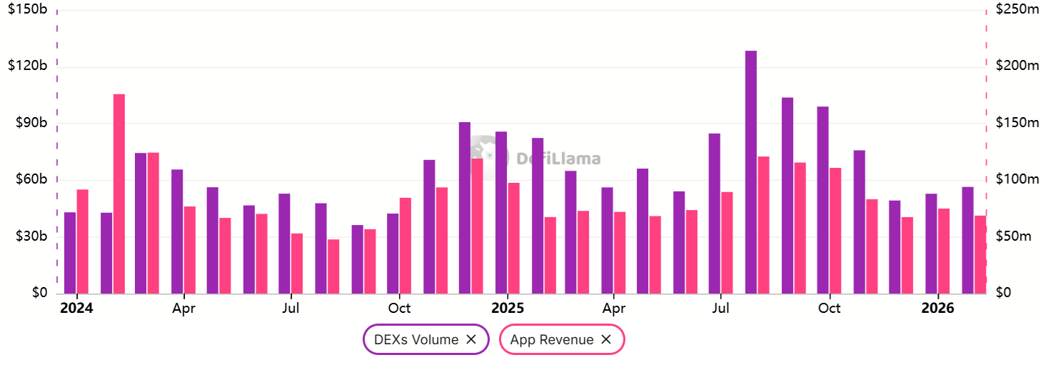 Ethereum DEX volumes dropped to $56.5 billion in February 2026, down significantly from a peak of $128.5 billion in August 2025. During the same period, monthly Solana volumes reached $95.5 billion, down from $120.6 billion in August. This contraction in activity has weighed on network fees and decentralized application (DApp) revenue, effectively reducing the immediate incentives for holding Ether.