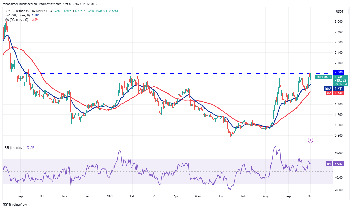If bulls do not give up much ground from the current level, it will improve the prospects of a rally above $2. If that happens, the RUNE/USDT pair could first rise to $2.28 and subsequently to $2.78.