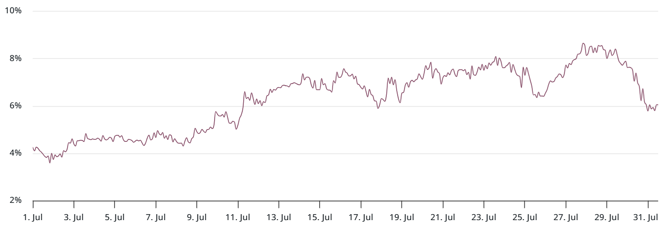 The annualized funding rate for Ether perpetual futures fell to 9% on Thursday, indicating lower demand for leveraged bullish positions. In contrast, the 19% funding rate from Friday to Monday showed moderate excitement. Currently, the funding rate has returned to its level from July 7, when ETH traded near $2,600. This is unexpected since ETH has gained 46% since then.