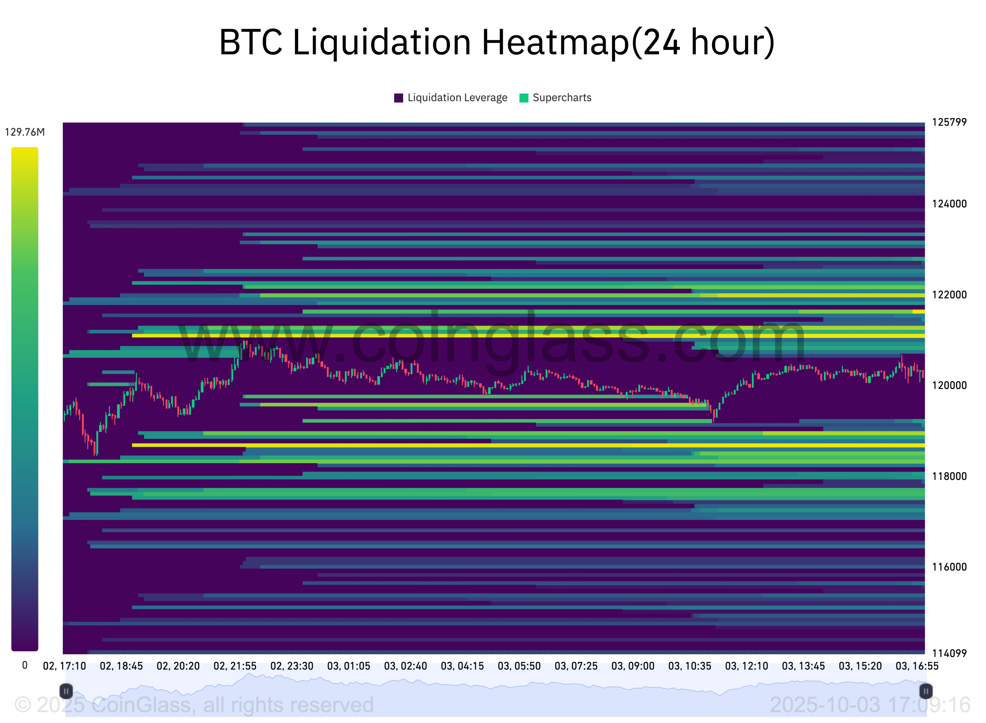 Data from CoinGlass additionally showed bids massing around $118,500, representing potential support in the event of a market correction.