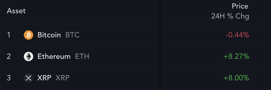 The past 24 hours further show Bitcoin wobbling between intraday profits and losses, while Ether and XRP have risen by over 8% each, indicating a shift toward top-cap altcoins among traders.