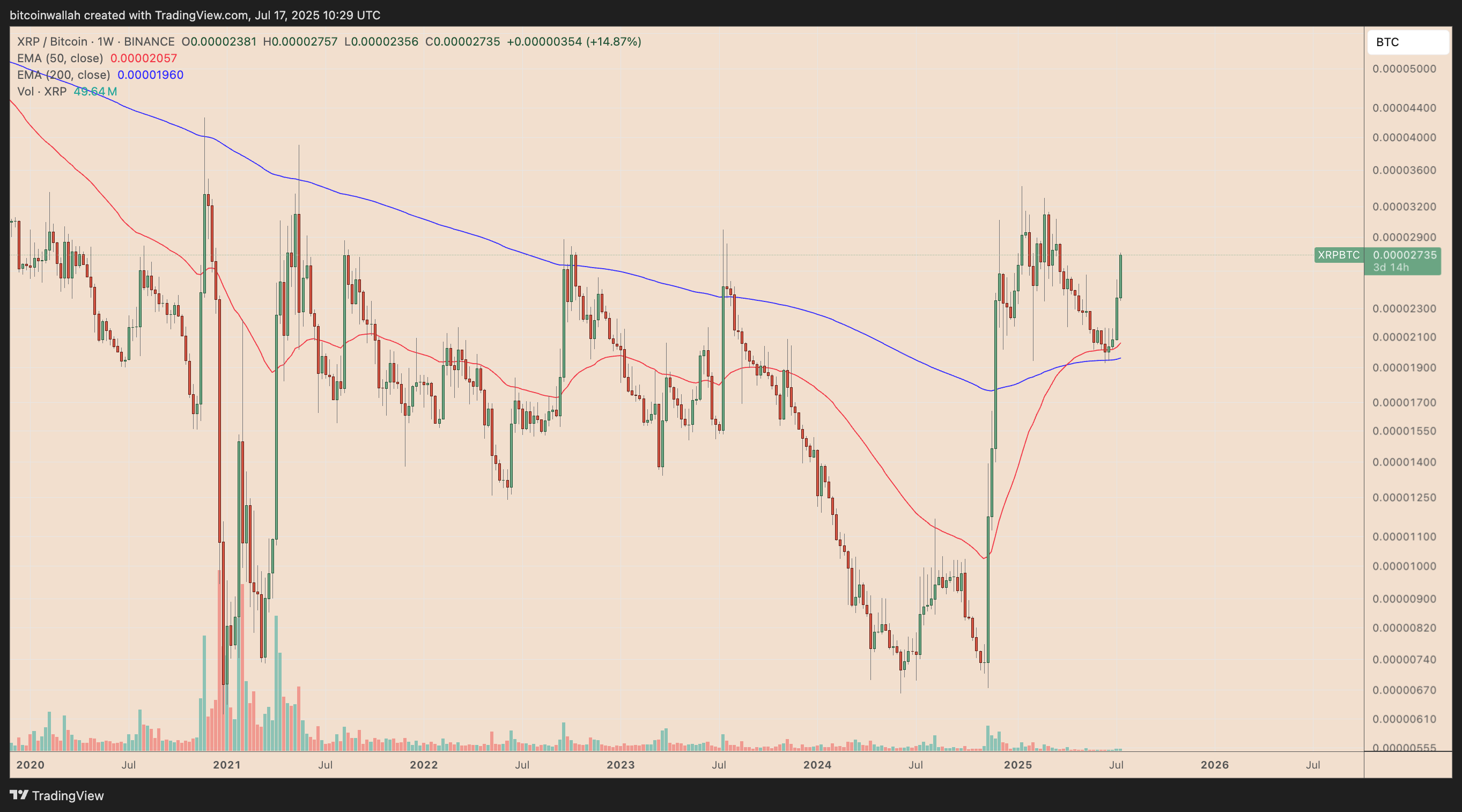 XRP price is up 35% against Bitcoin in July.