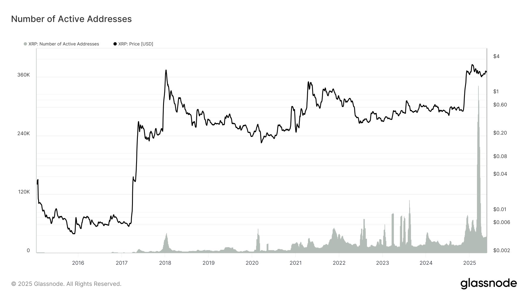 While it’s not a guaranteed warning sign, the sharp drop in active addresses could mean fewer people are using XRP to send or receive funds, and more are just holding.