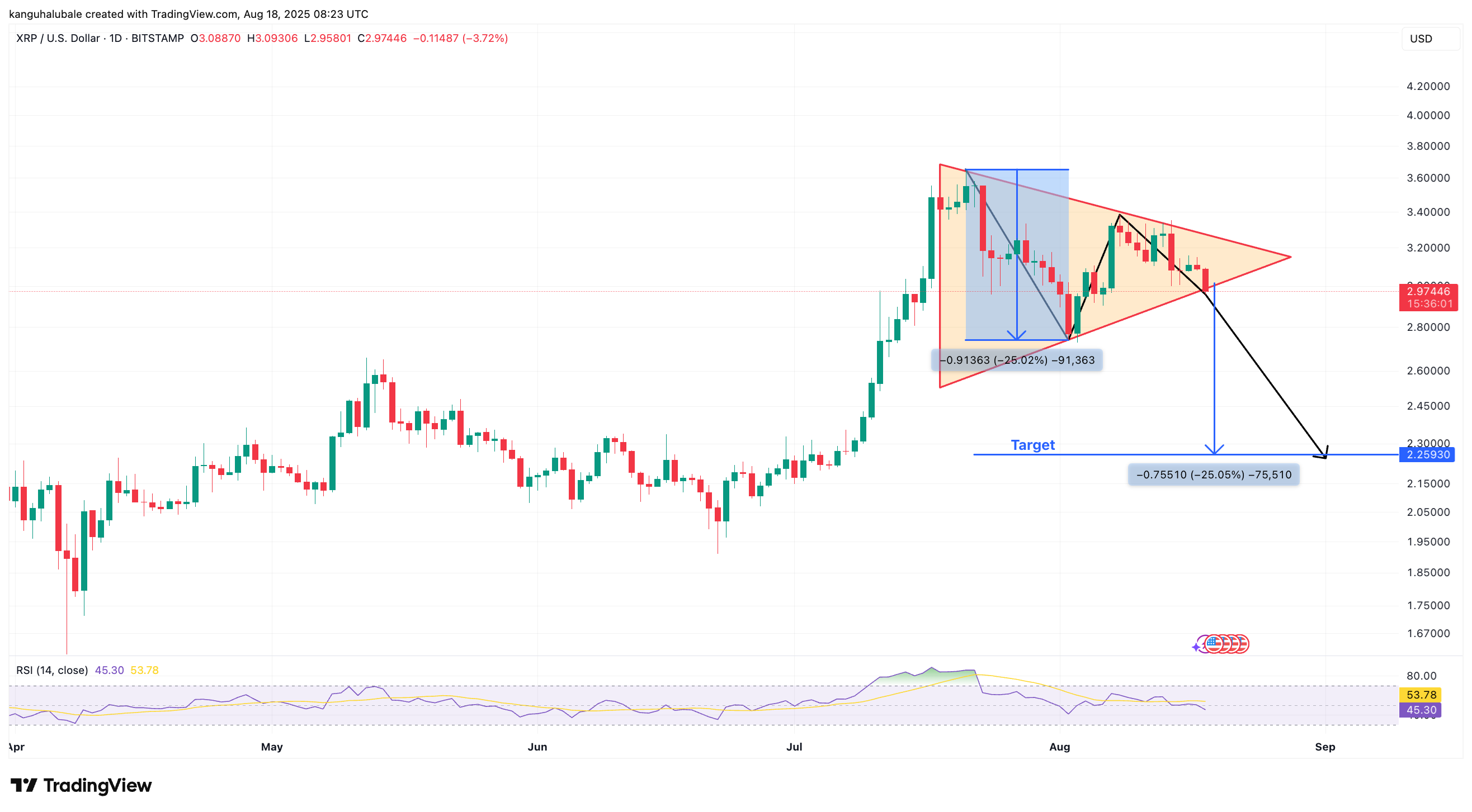 • XRP price must reclaim $3 support to avoid a deeper correction to $2.24.