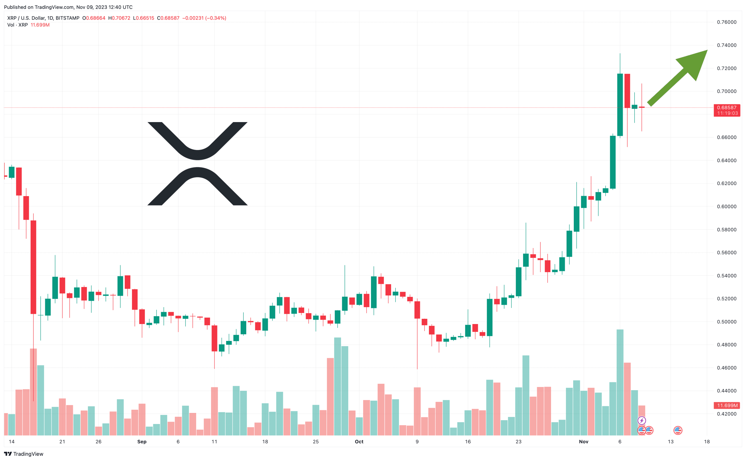 At $0.692656, XRP is still up by 12% in the past week and by 39% in the last 30 days, with the altcoin having risen by an impressive 100% since the beginning of the year.