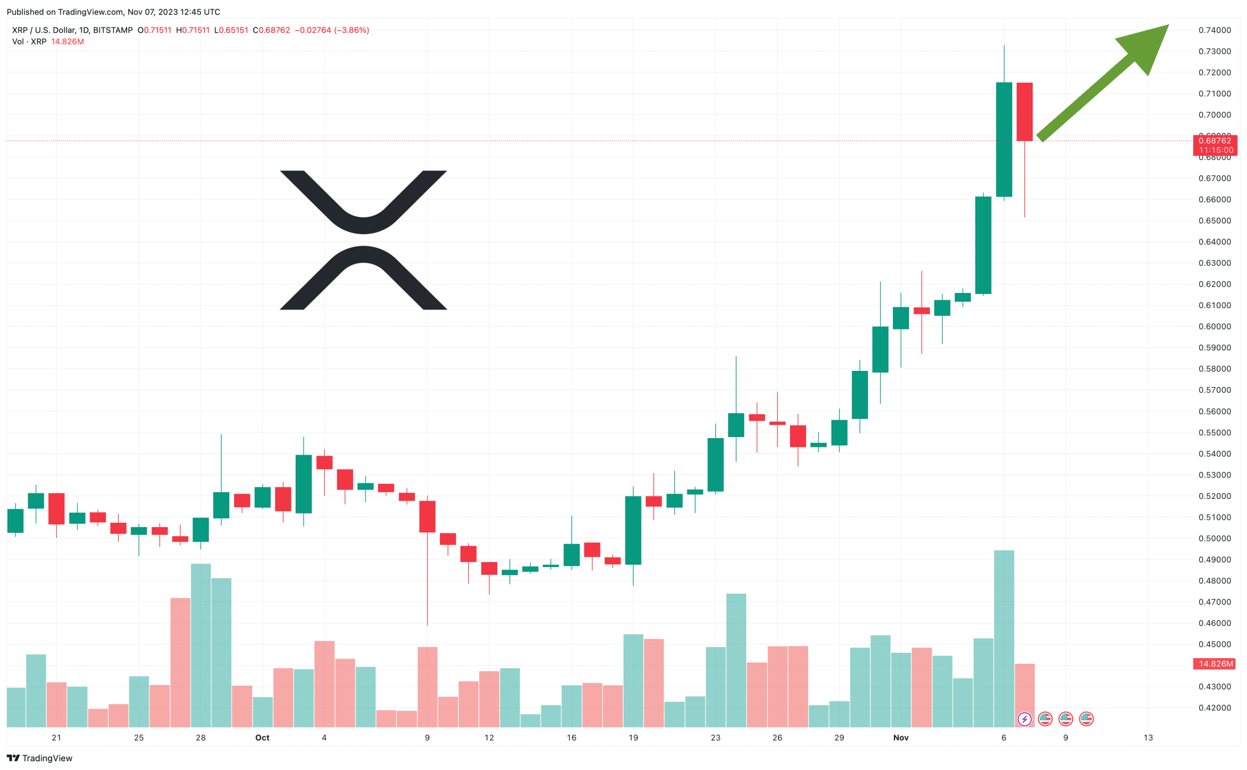 At $0.683798, XRP is up by 18% in the past week and by 31% in the last 30 days, with momentum remaining very much on its side.