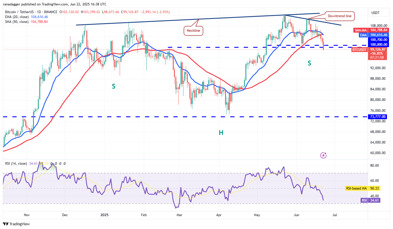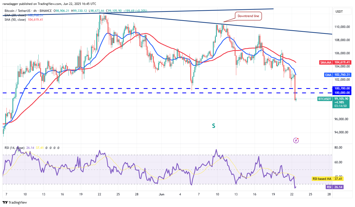 Buyers will try to start a relief rally, which could face selling at $100,700 and then at the 20-EMA. If the price turns down from the overhead resistance, the pair may deepen the correction.