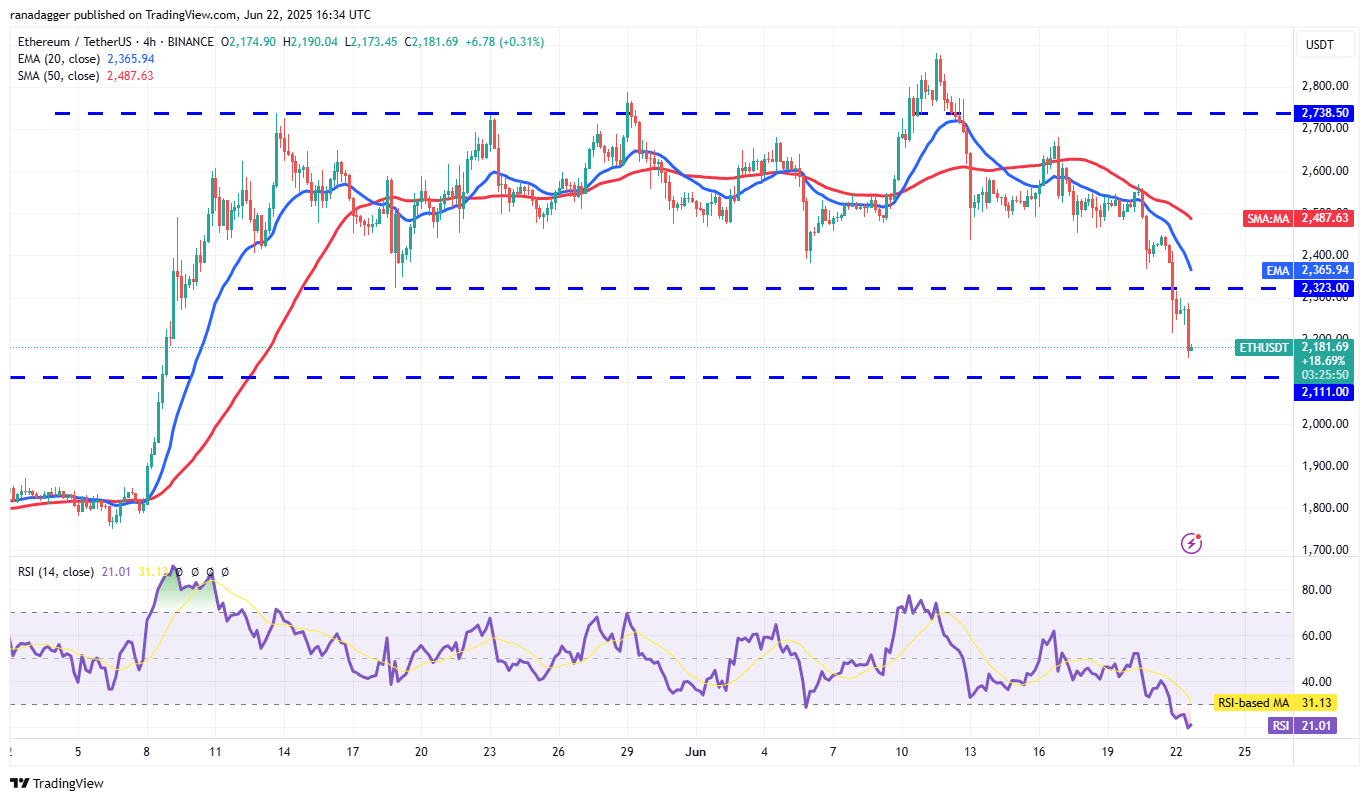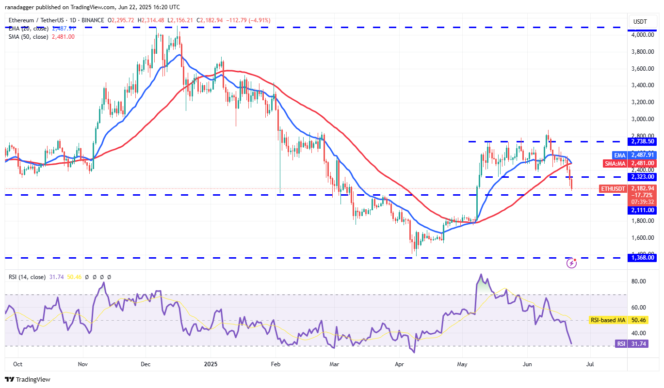 Ether (ETH) turned down from the 20-day EMA ($2,487) and fell below the 50-day SMA ($2,481) on Friday.
