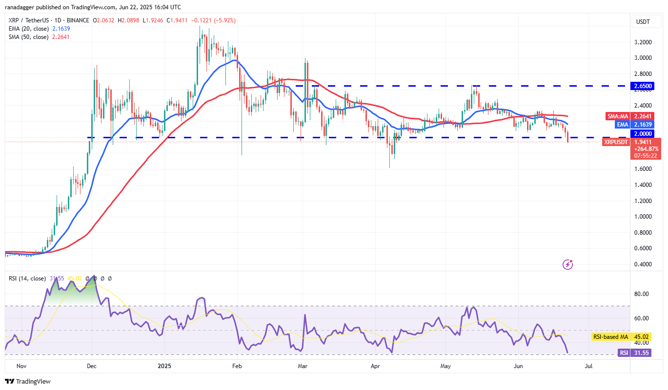 If the price sustains below $2, the XRP/USDT pair could tumble to the $1.61 support. Buyers are expected to vigorously defend the $1.61 level because a break below it may start a collapse to $1.28.