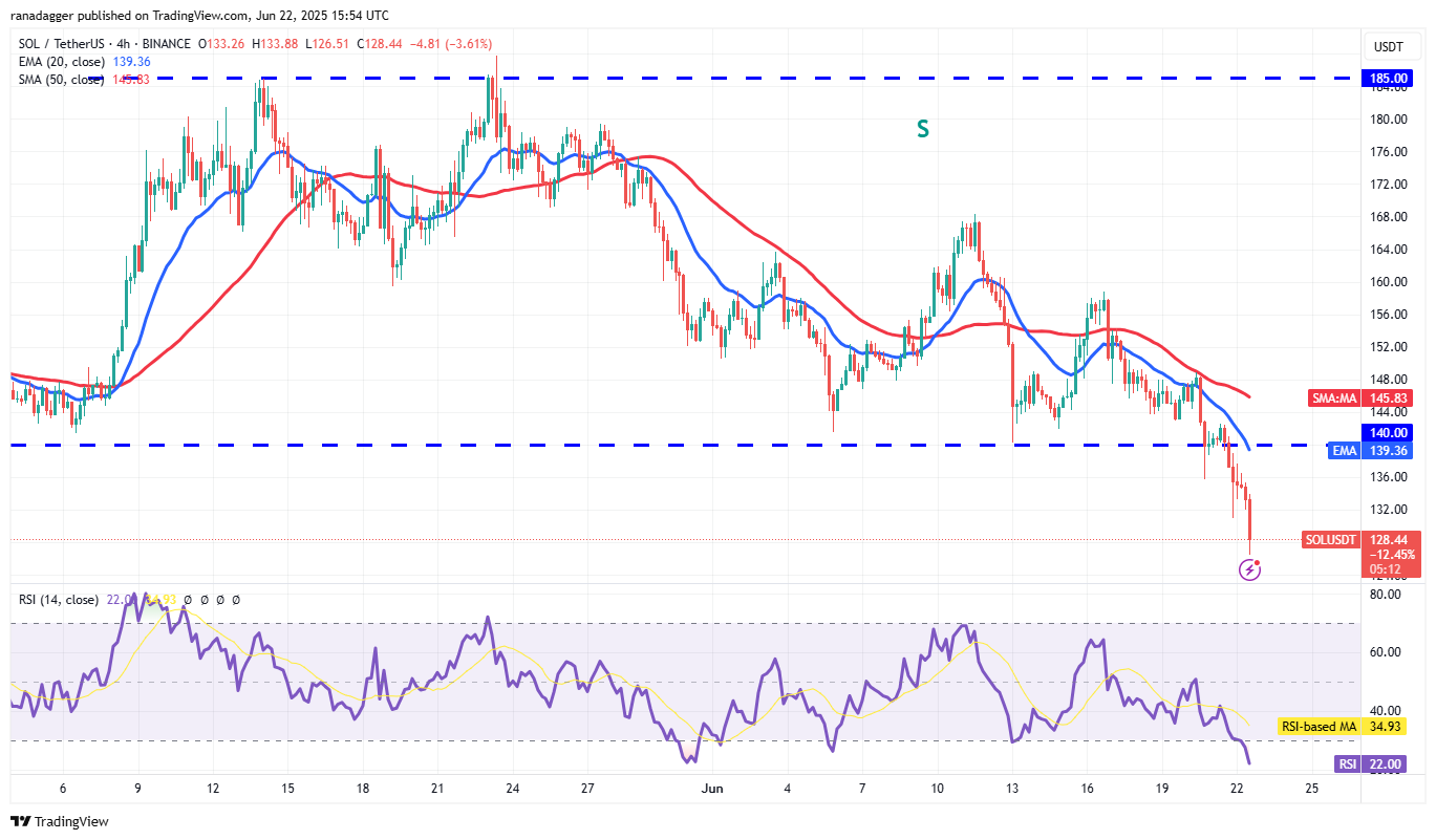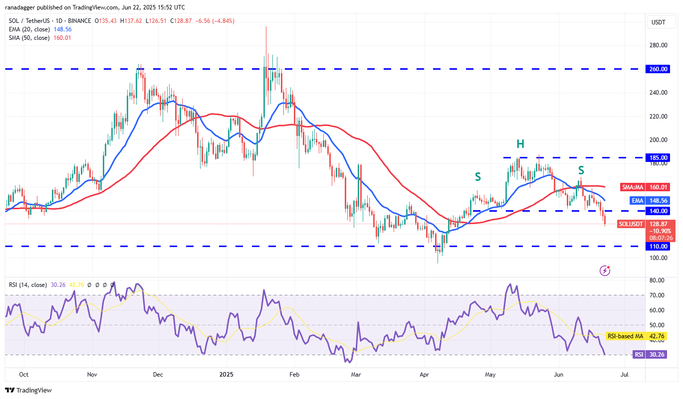 The bulls will try to start a recovery but may face selling at the 20-day EMA ($148). If the price turns down from the 20-day EMA, the SOL/USDT pair could plunge to the $110 support and eventually to the pattern target of $93.